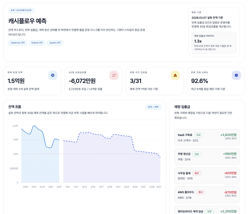 30일 자금 흐름과 리스크를 파악해요.