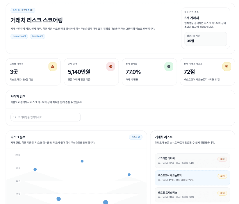 연동된 결제 이력과 거래 데이터를 기반으로 거래처의 신용도를 효율적으로 평가해요.