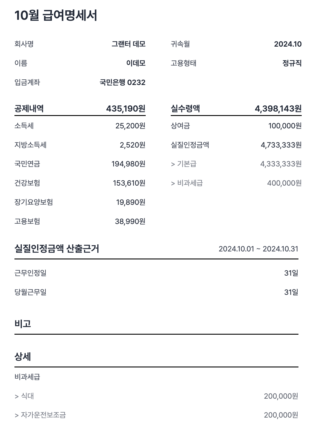 그랜터에서 이메일로 급여 명세서를 보낼 수 있어요.